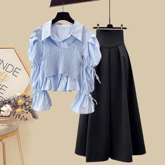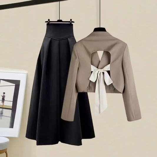 • "Chic Women's 3-Piece Set: Stylish Outerwear, Top & Skirt Ensemble"