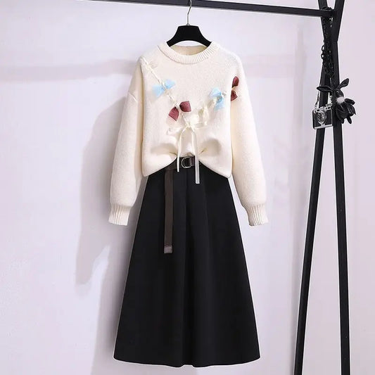 • "Chic Embroidered Sweater and Skirt Set: Effortless Style"
