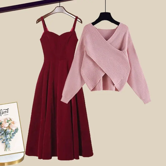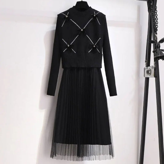 "Chic Knitted Sweater & Dress Two-Piece Set"