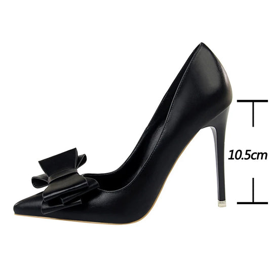 "Classic High Heel Stiletto Pumps with Bow-Knot - Luxury PU Leather Women's Banquet Shoes"