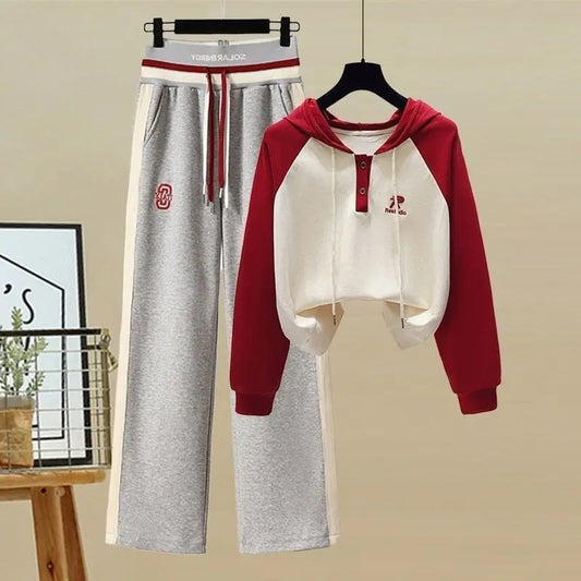 • "Chic Contrast Hoodie and Trouser Two-Piece Set for Effortless Style"
